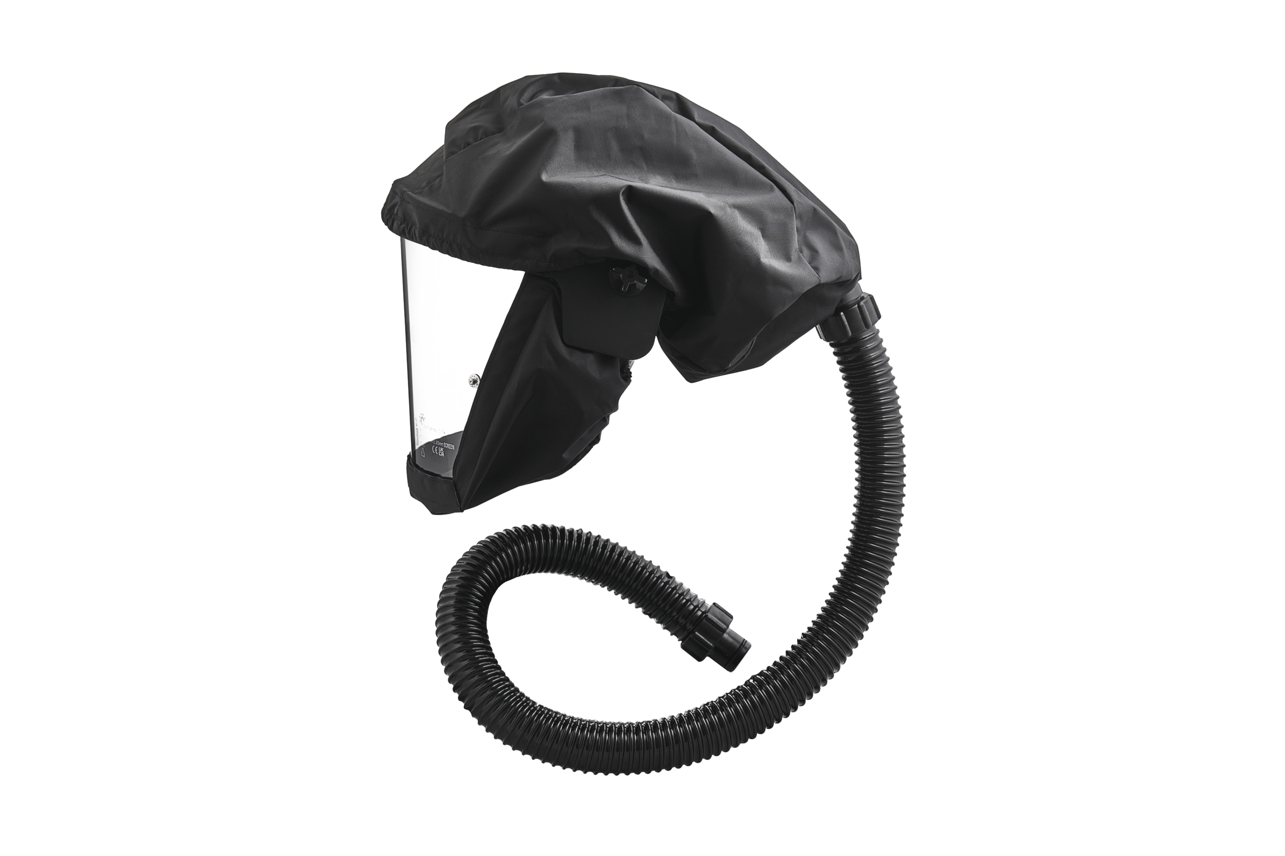 - Breathing tube connects power unit to the headtop