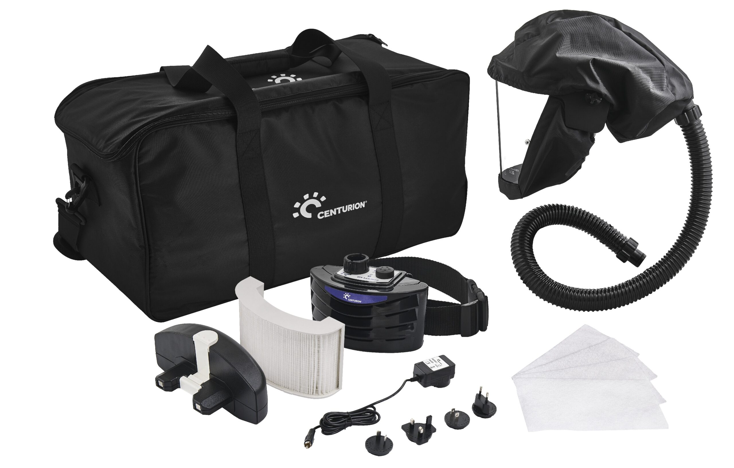 The Centurion ConceptAir is designed to be used in healthcare and industrial settings, this Centurion ConceptAir powered respirator kit contains a power unit plus a visor and necessary accessories. Lightweight and easy to use, the Centurion ConceptAir provides respiratory protection against particulate hazards including dusts, mists and airborne micro-organisms, when used with the P3 filter included. Perfect as a starter kit, it also includes a breathing tube, pre-filters, a battery and a charger.