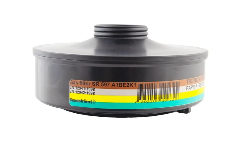 The Sundström SR 597 is part of the Sundström range of filters, this A1BE2K1 gas filter is for use with the SR 500 and SR 500 EX powered respirator units. It offers respiratory protection against organic and inorganic vapours, acid gases and ammonia, and it can be easily swapped for other filters depending on your application.